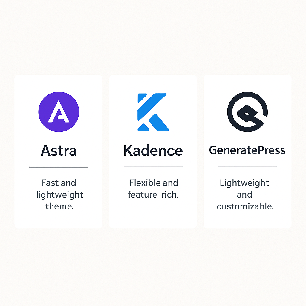 Astra, GeneratePress, Kadence—sab fast aur SEO friendly hain.